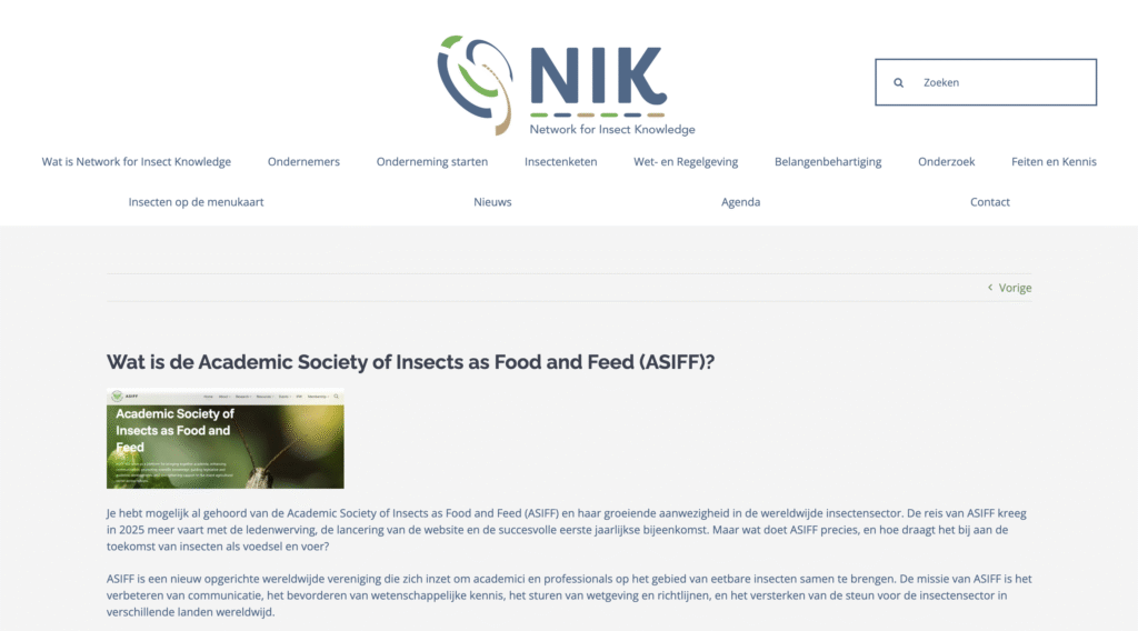 ๐ Recently, Network for Insect Knowledge (NIK) published an article featuring ASIFF. In this piece, Teun Veldkamp, president of the ASIFF (Academic Society of Insects as Food and Feed), explains what ASIFF is, the role we play in the insect sector, and how we contribute to knowledge sharing, collaboration, and sector development.